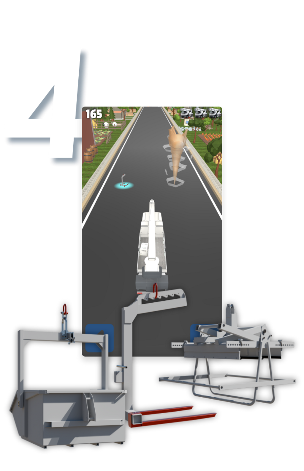 Sammle die blau markierten Teile ein und vermeide die Hindernisse, sonst verlierst du ein Leben!